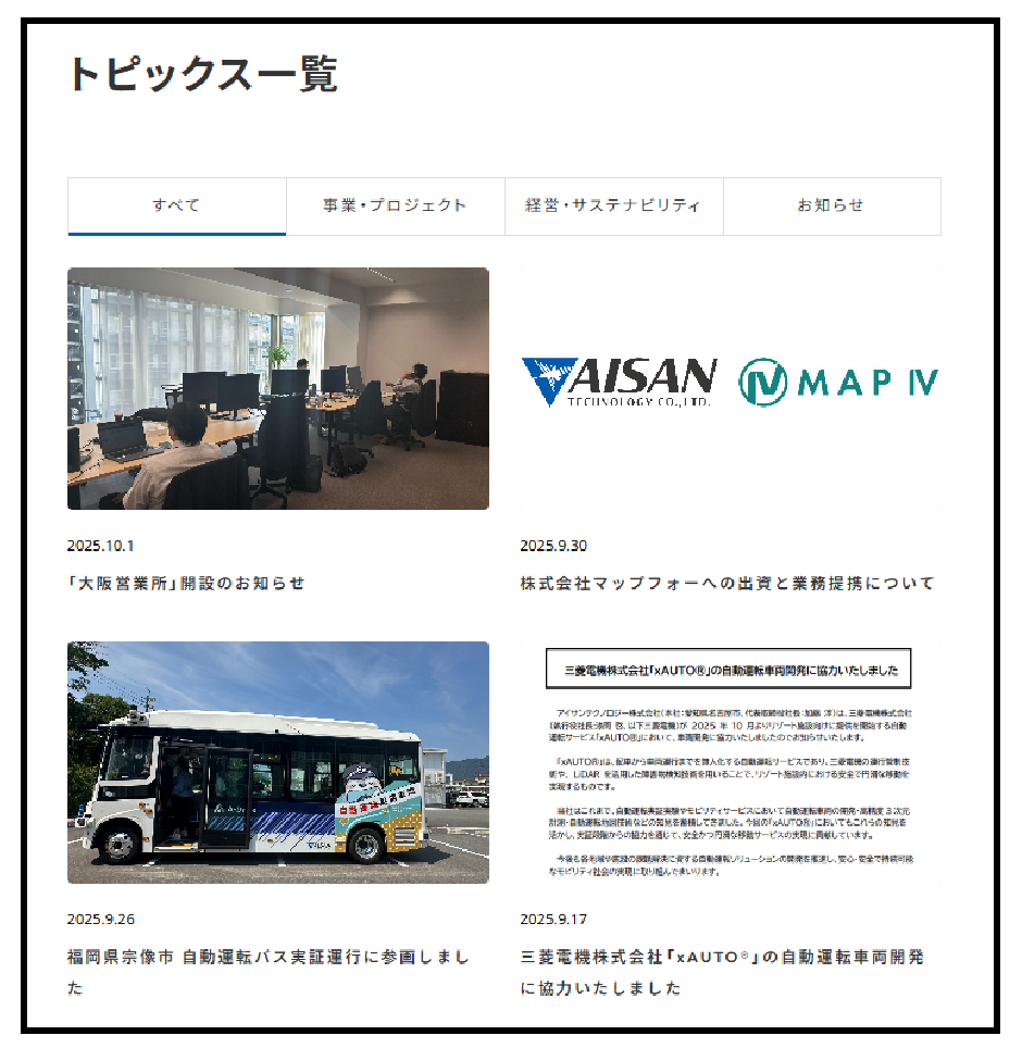 当社のプレスリリースなど最新情報やお知らせ、展示会情報などを時系列順にまとめて掲載しています。