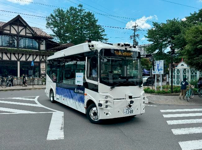 軽井沢駅北口~旧軽井沢ロータリー~軽井沢駅北口の約3kmを自動運転レベル2による自動運転EVバスMinibusが走行しました。