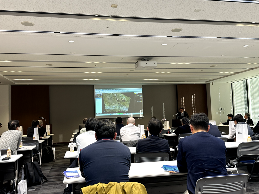 当日は、当社技術顧問・松坂茂(元国土地理院職員)より、「測地成果2024」の改訂ポイントや地理空間情報の今後の活用展望について講演いたしました。